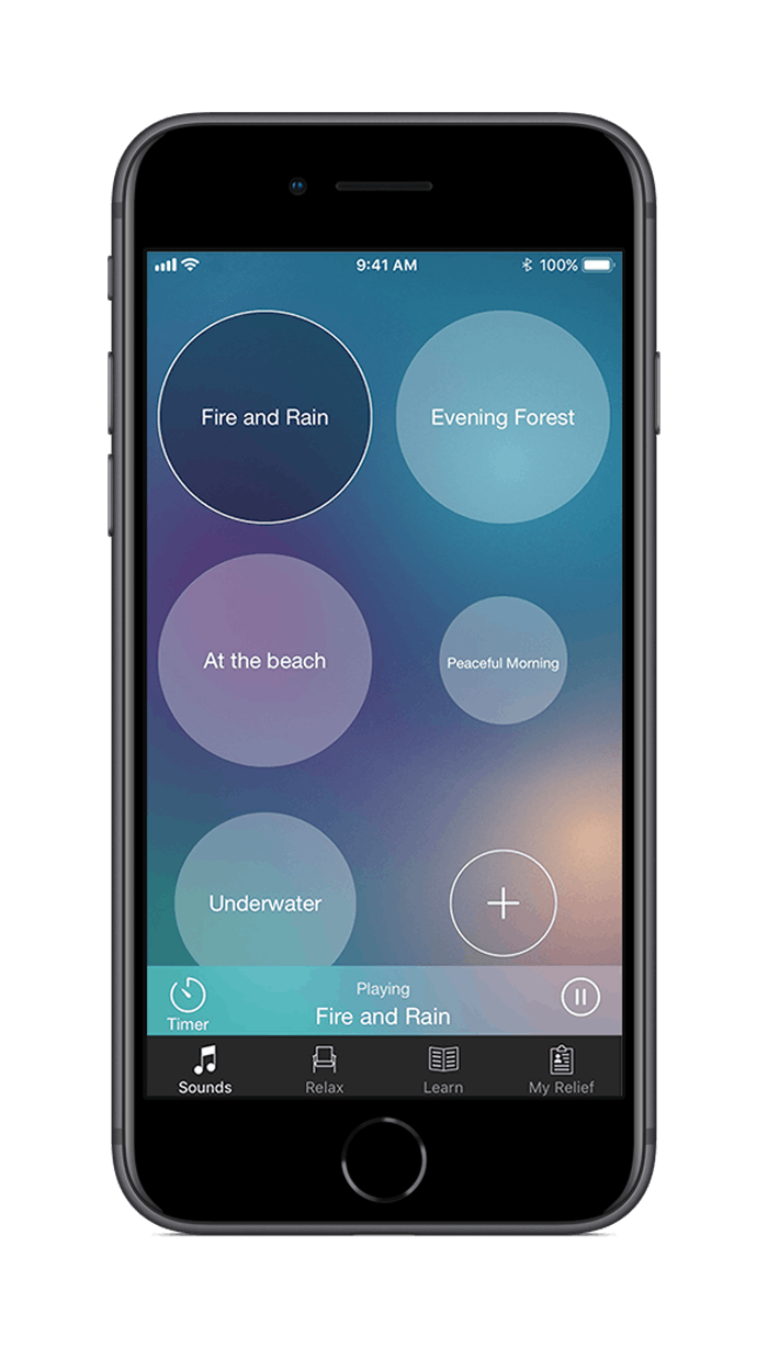 Beltone ha desarrollado una aplicación gratuita para iPhone, iPad, iPod y los dispositivos Android, especial para el tratamiento del tinnitus. Ofrece una combinación de terapia de sonido y ejercicios relajantes con el objetivo de evitar la atención de nuestra mente sobre el acúfeno. Con la aplicación Tinnitus Calmer se pueden reproducir los sonidos de la biblioteca de la propia app y crear mezclas propias, incluso añadiendo la música deseada. Esta aplicación puede formar parte de su terapia diaria para el acúfeno. Disponible en varios países. Descárguela gratis desde App Store o Google Play.