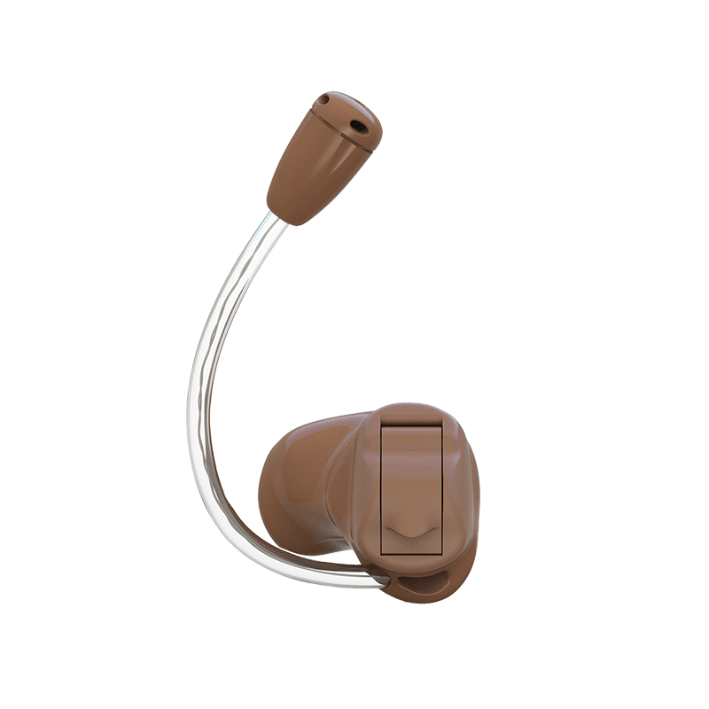 Projetado para “desaparecer”, a parte principal de um aparelho auditivo MIC se esconde em seu canal auditivo. Esta peça é fabricada sob medida com base em uma impressão do canal auditivo feita durante a sua visita, por isso é muito confortável. O microfone do aparelho auditivo é um componente separado e é usado dentro da concha, ou sulco curvo, do ouvido externo, onde fica fora de vista. Um pequeno tubo transparente envia o som do microfone em sua concha para o componente em seu canal auditivo.